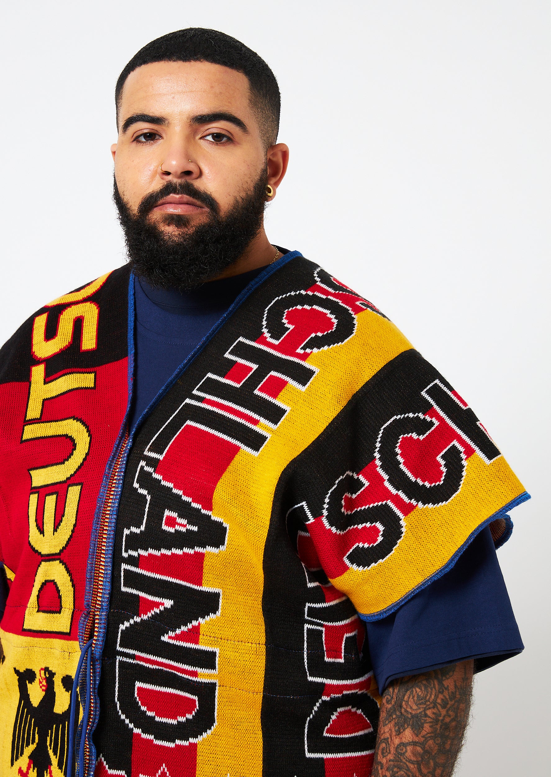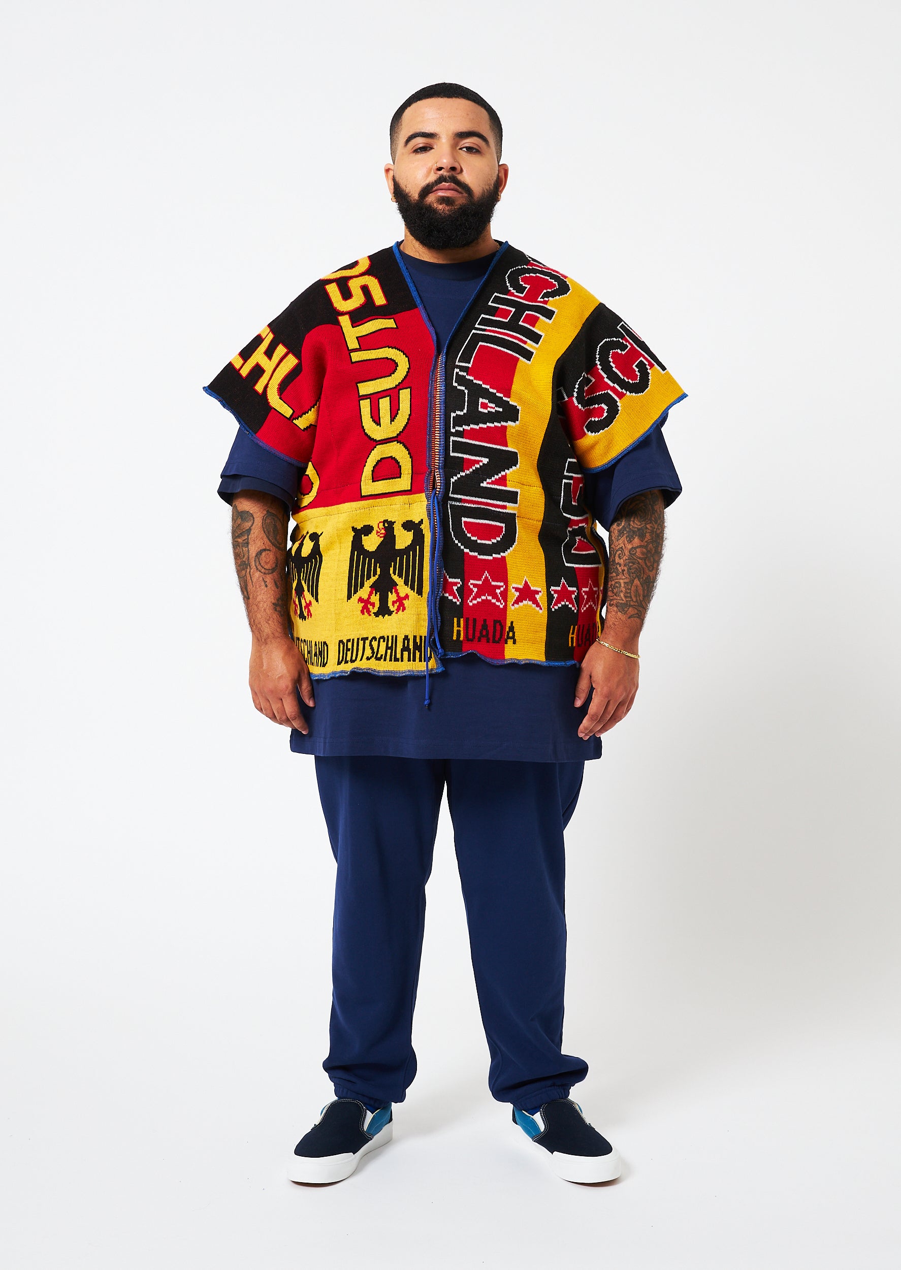 - This spencer fits most sizes. Our model Bappie has size XL and has a height of 160cm.
