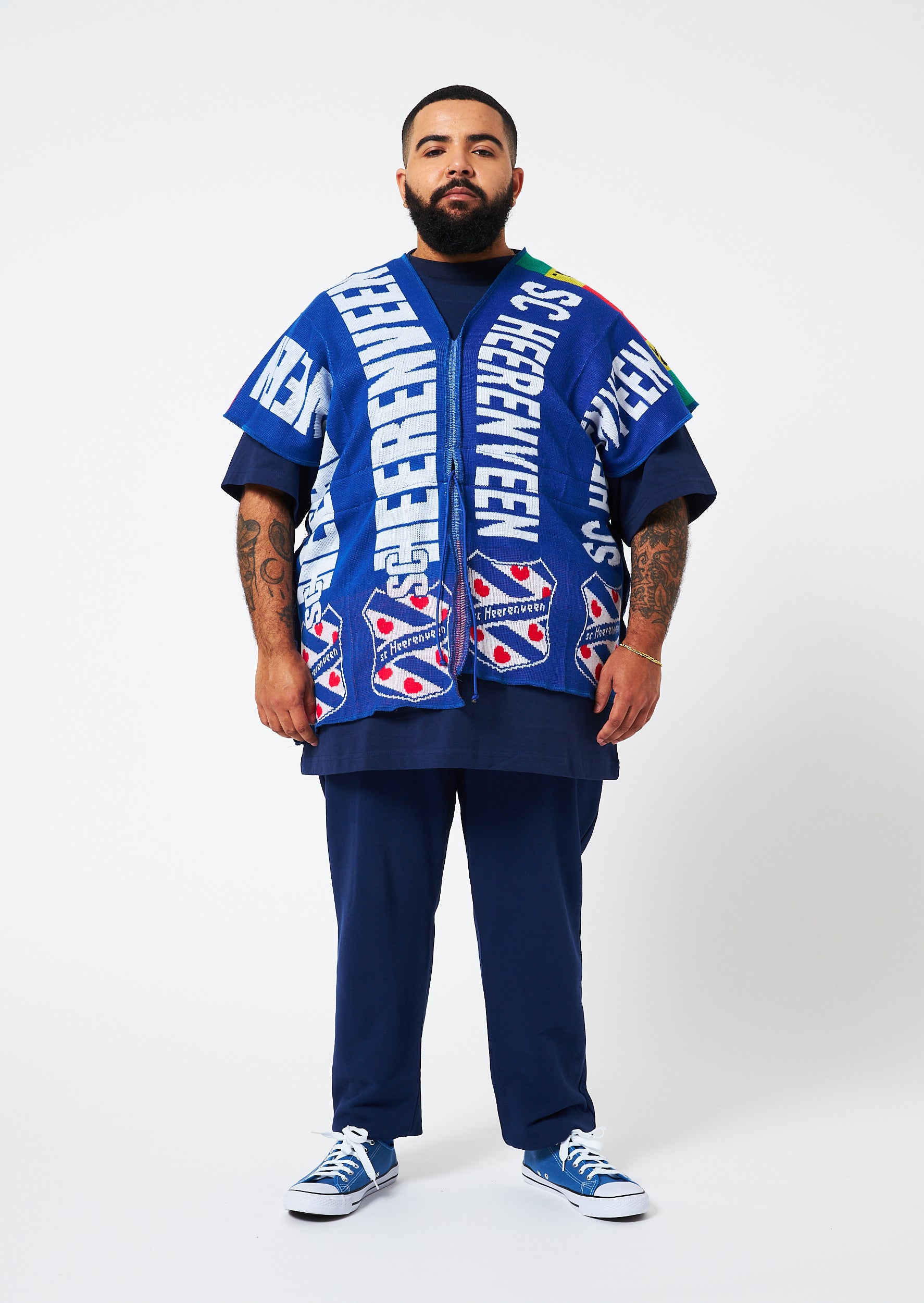 - This spencer fits most sizes. Our model Bappie has size XL and has a height of 160cm.