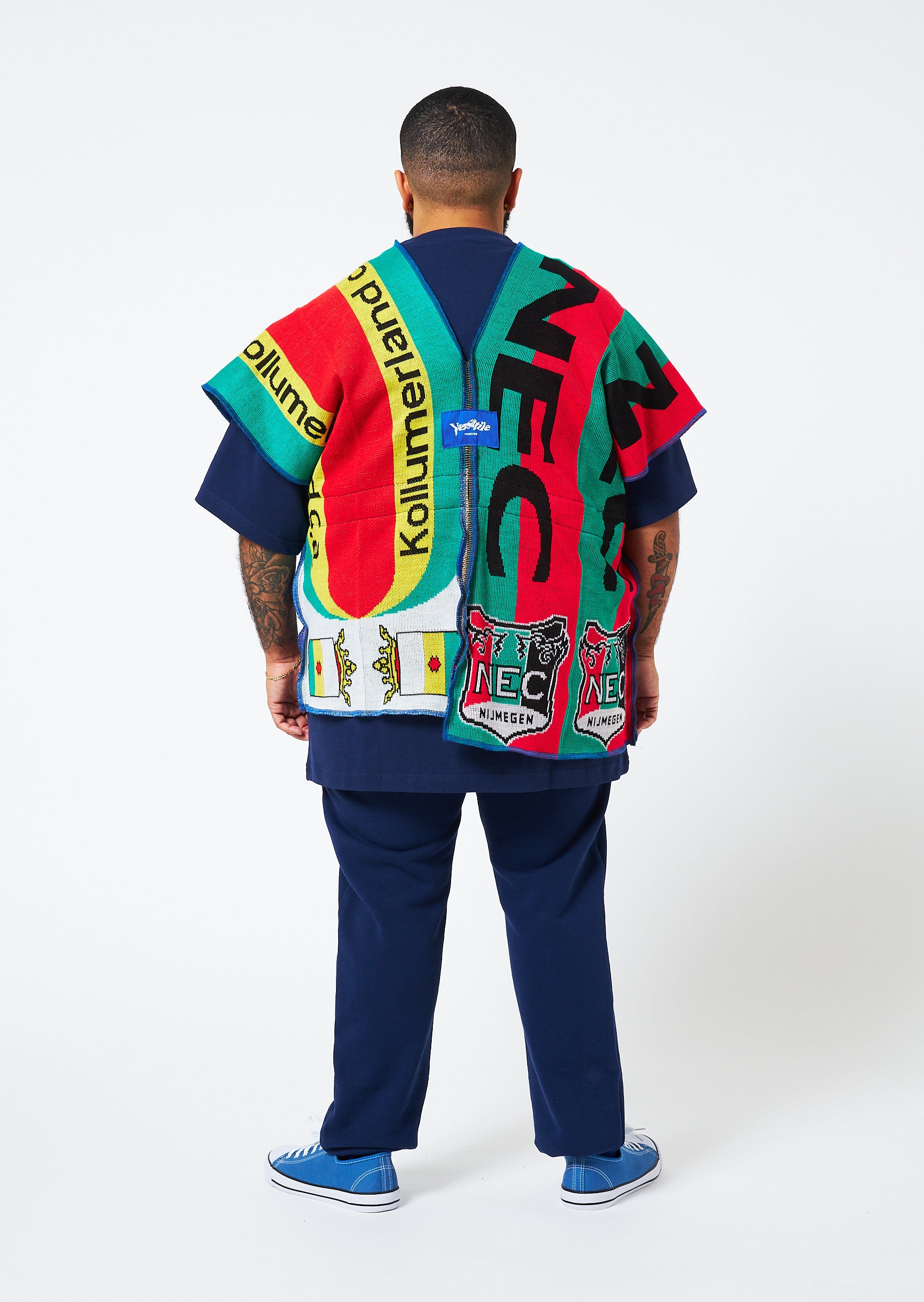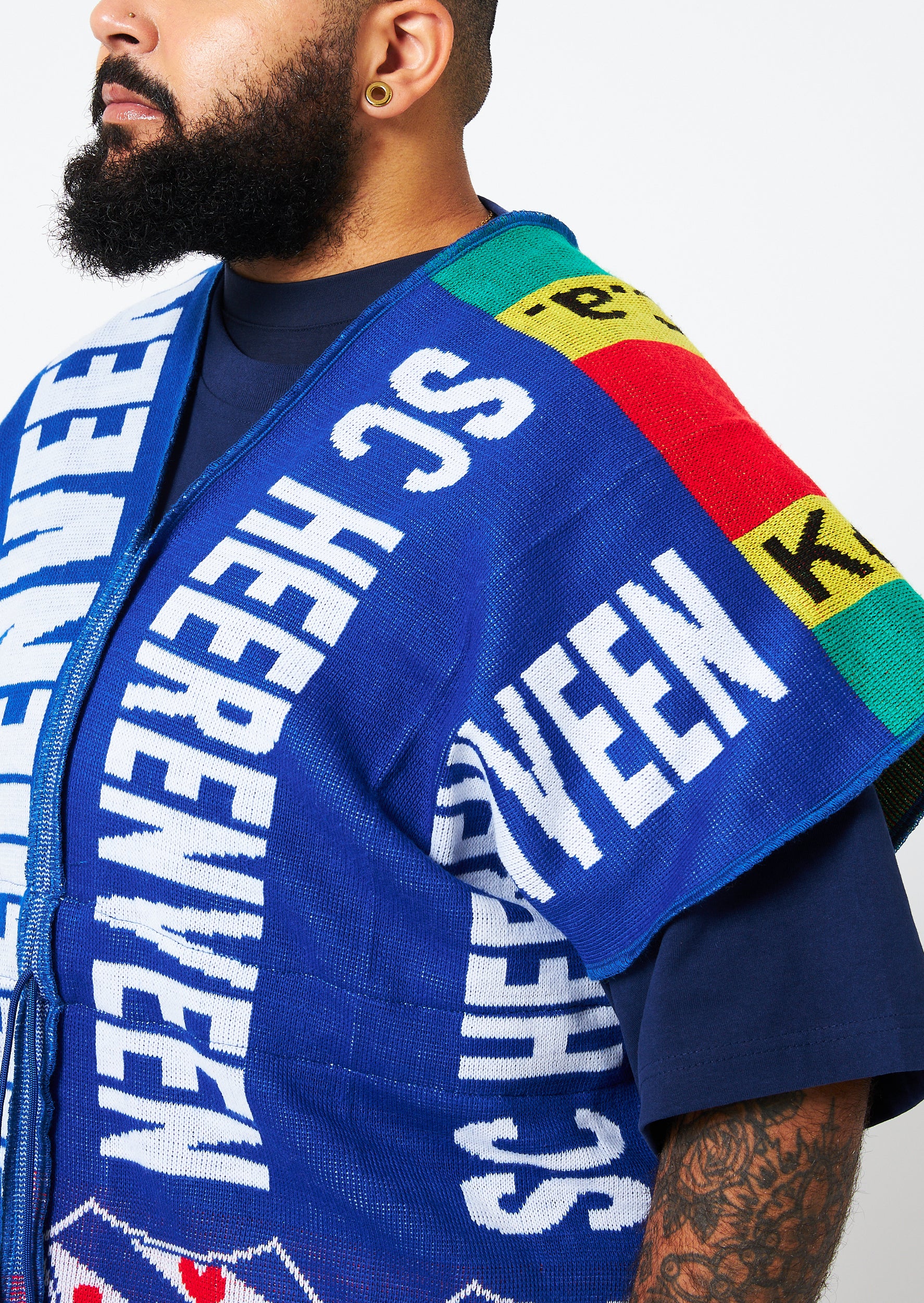 This unisex spencer is inside out wearable and adjustable in the waist with kobalt blue drawstrings. This unique knitted fabric has a comfortable touch. Easy to wear on its own or style with your own wardrobe.