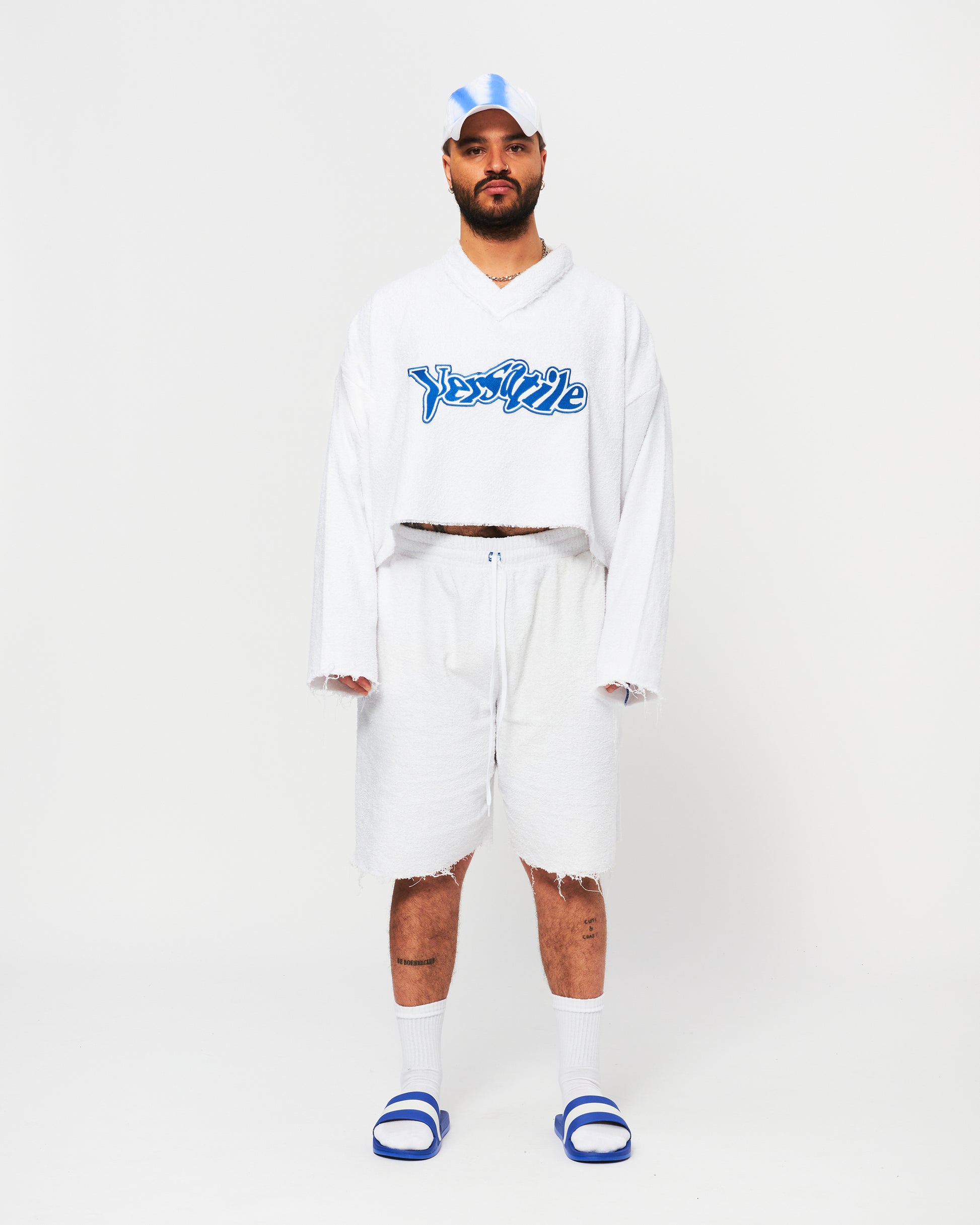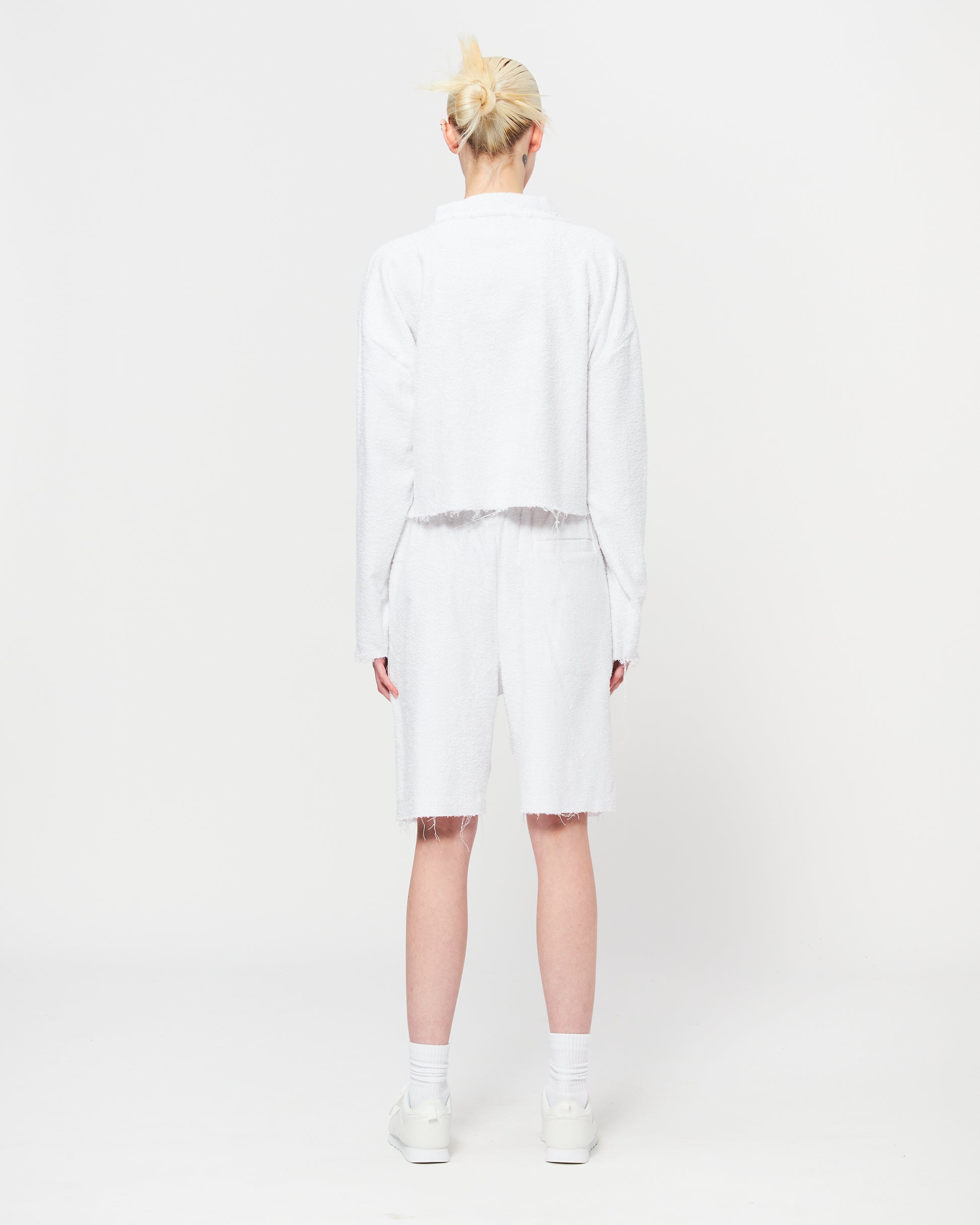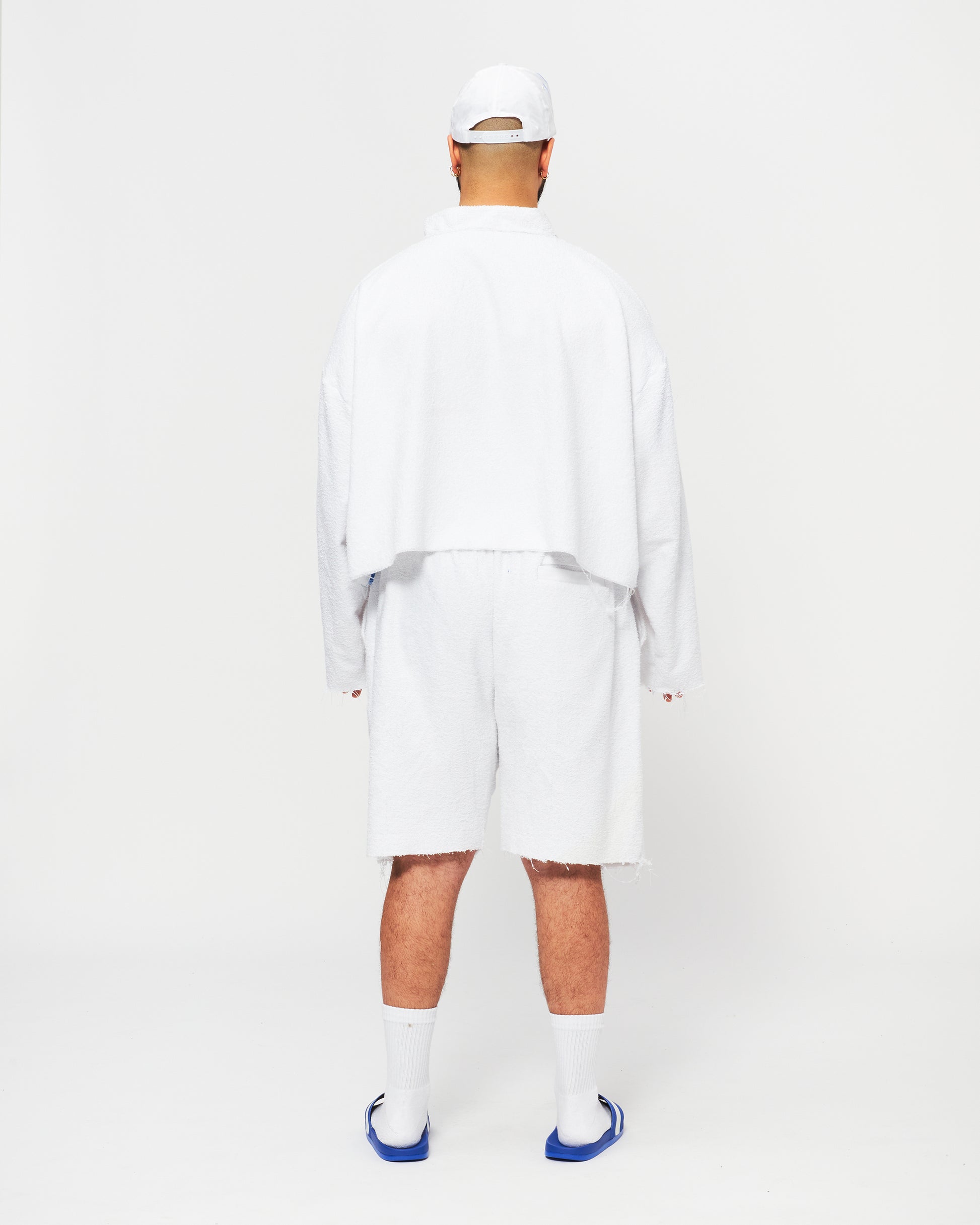 To our Towel Jersey, we've developed a comfortable oversized shorts in this soft towel fabric. The style has raw edges, meaning they will distress more while wearing.